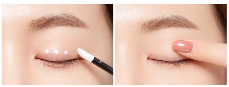 想眼妝更加持久又不易溶妝,可以在畫眼妝前先在眼皮位置塗抹薄薄一層的眼影打底液,不但令眼影色更顯色,還能讓眼妝更持久,達到乾淨又不顯髒的效果!