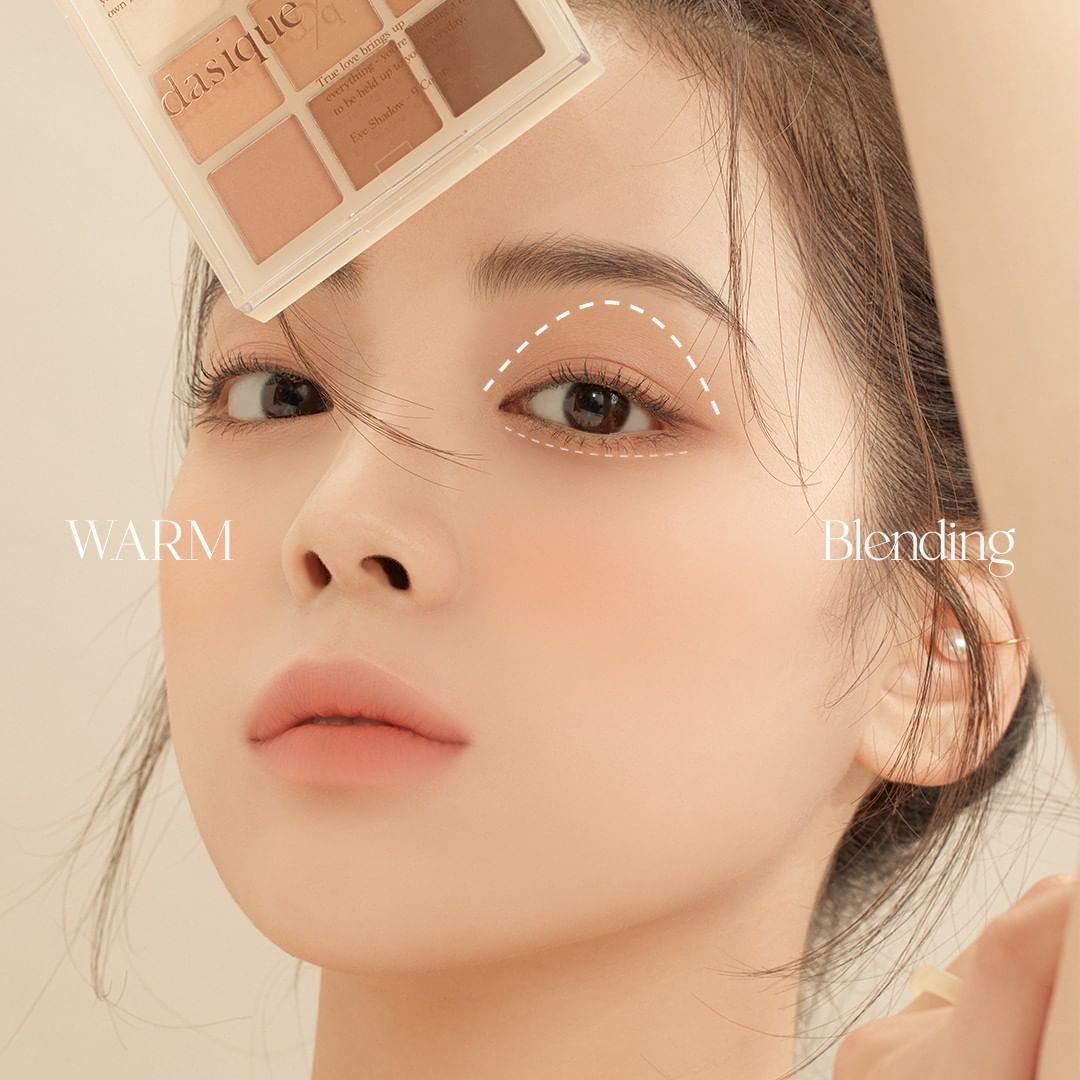 「4筆眼影畫法」的第一筆是先以最淺色的霧面眼影色,在整個眼窩上大範圍暈染,餘粉也可輕輕帶至下眼瞼,有助雙眼消腫。如果是化妝新手可以選擇最百搭的大地色系眼影盤,會比較不易出錯~
