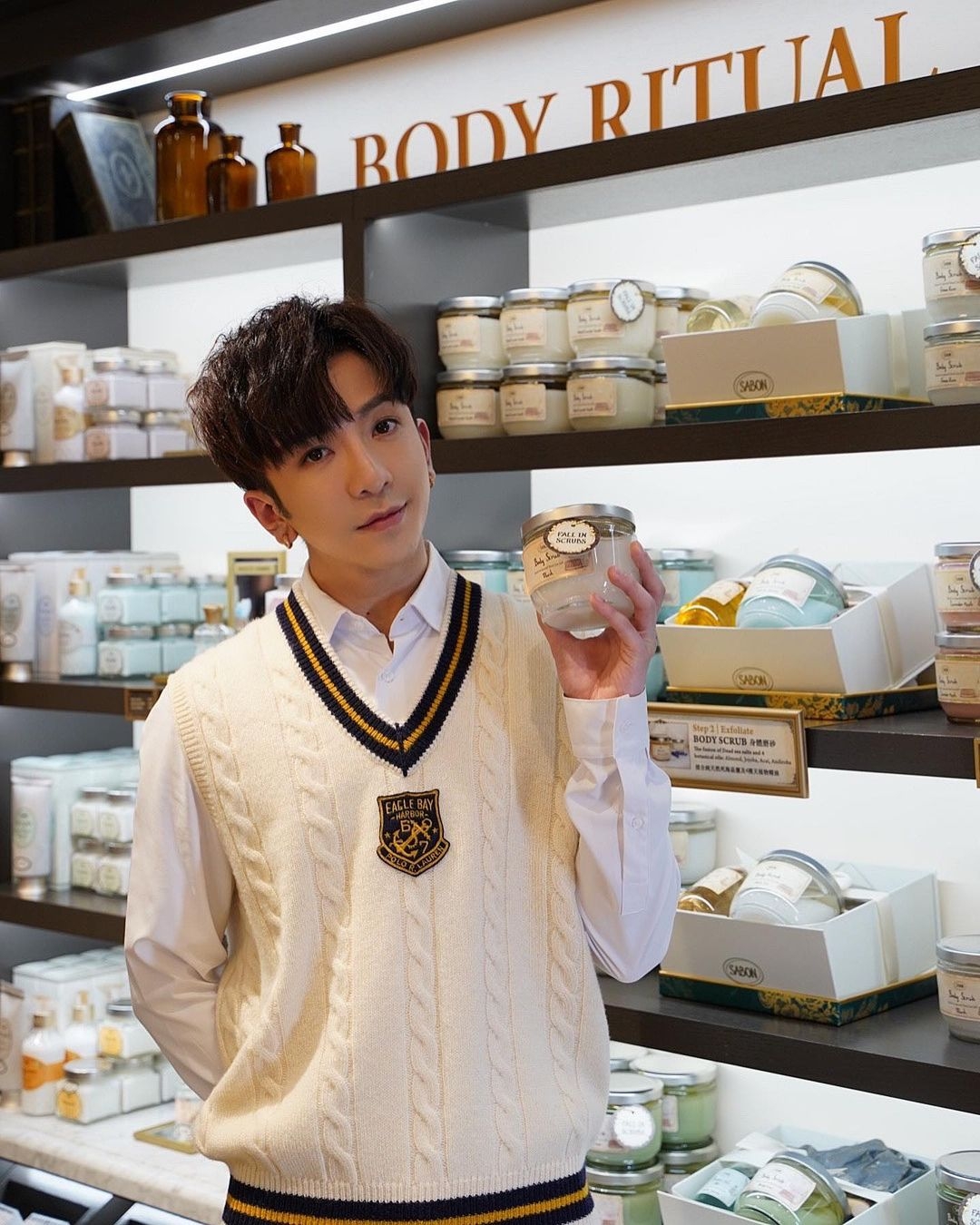 Anson Lo手上拿著的就是Sabon的皇牌磨砂產品,塗上body lotion前先使用身體磨砂去角質,效果會更好!