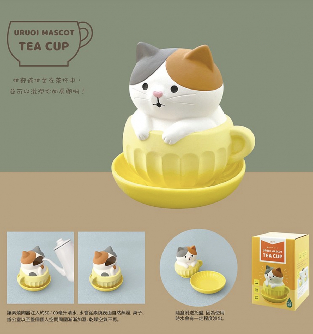 這款超萌貓貓氣化加濕器來自日本熱門生活雜貨品牌 DECOLE,同樣在貓貓的「身體」裡注水就有加濕的功能,因為使用時水會有一定程度滲出,所以這款加濕器也很貼心的附上了托盆~