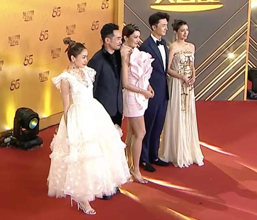 除了 Yoyo 的銀色戰衣令人「流鼻血」,劉穎鏇的造型也不遑多讓,同樣大騷豐滿上圍和超長雙腿!至於同時出場的張寶兒就身穿色彩繽紛的花花禮服,在一眾素色淡雅晚裝中相當顯眼!