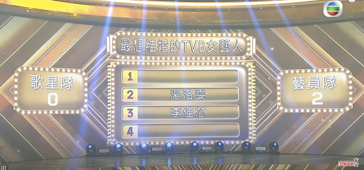 亮點環節之一就是由李思捷主持的《思密大戰》,這部分就要考兩隊成員答出「最想結婚的TVB女藝人」、「拍電影同樣出色的香港天后級歌手」和「被公司雪藏的原因」三條問題。當中講到最想結婚的女藝人,和男友馬國明站在一起的湯洛雯就少不了被開玩笑(笑)