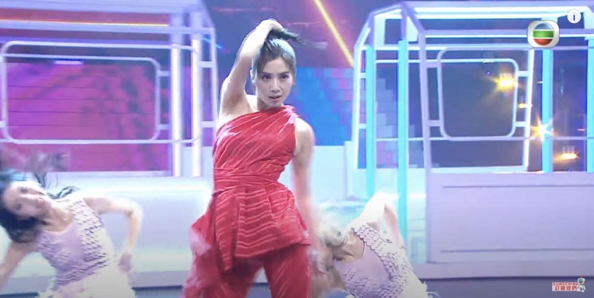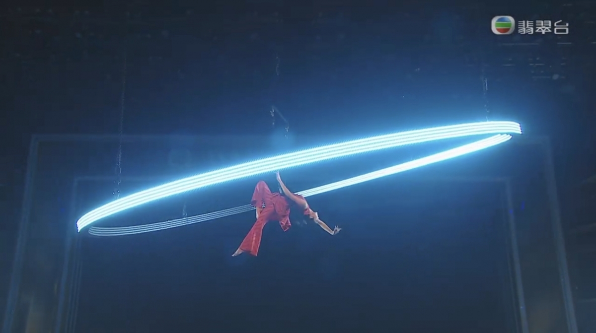 節目其中一部分是由眾多女藝人表演跳舞,當中黃智雯獲得網民大讚好勁!她除了每個舞步都跳得相當到位之外,有一下居然還吊威亞升到半空,和巨大圓形光管形成了絕美的畫面!