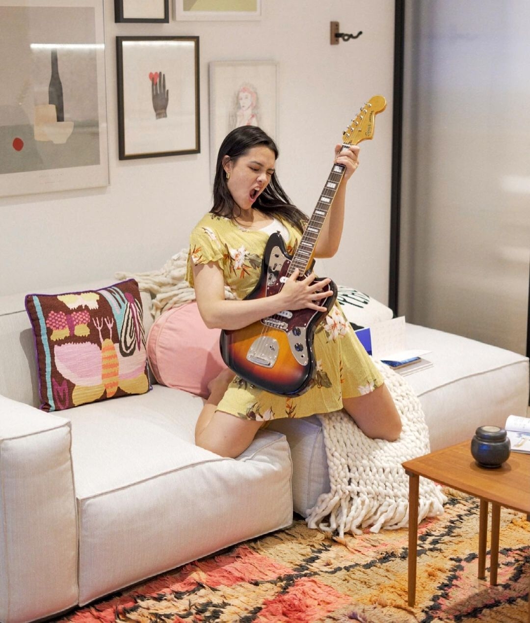 更不時會拍YouTube或在IG分享拿着結他自彈自唱的影片,連參賽的才藝表演也是表演彈結他,可見她對唱歌也充滿興趣~