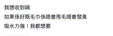 網民認為每個人家中都必定有毛巾,收到毛巾套裝也不會覺得驚喜。但就有其他網民留言認為毛巾是消耗品,隔一段時間就可以換新毛巾,如果是吸水力強的優質毛巾,也是不錯的聖誕禮物。