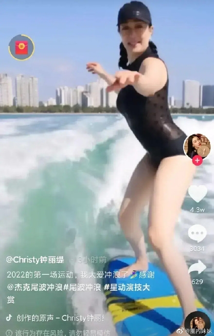 另一位涷齡女神鍾麗緹(Christy)曾是90年代的性感女神,雖然51歲的她已生了三個小朋友,但無論樣貌身材都Keep得好好。近日Christy就於抖音post了她身穿黑色透視one-piece泳衣滑浪的短片,大曬火辣身材!