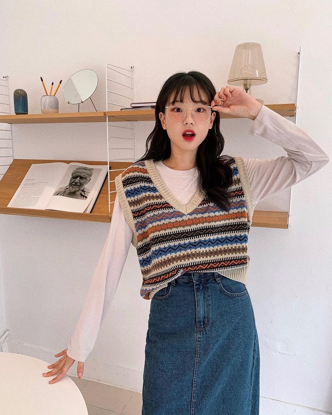 背心冷衫也是近年的熱門單品!不論內搭連身裙、T恤還是恤衫都各有特色,下身襯裙或褲都好看,百搭又能打造出多變的風格~