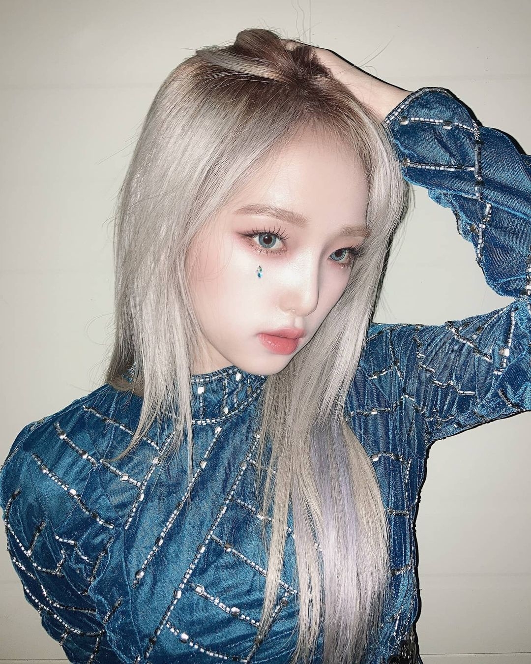 韓國女團WJSN的YeoReum就以上灰下藍的漸變營造出層次感,霧灰色髮絲間帶點藍色,滿滿的高級感!