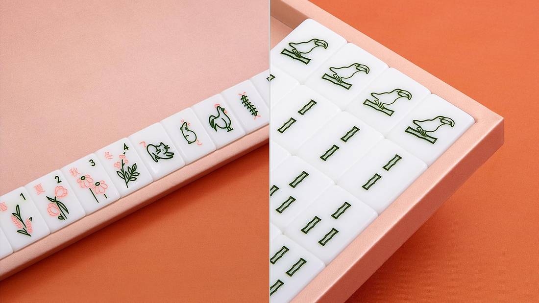 麻將設計靈感來自品牌標誌性的粉色、松綠色及笑臉圖案,其中的「一索」更採用了品牌童裝系列的大嘴鳥圖案,加上櫻花粉紅色的包裝,配合可愛的麻將印花,令人忍不住手想馬上來一場「雀局」!