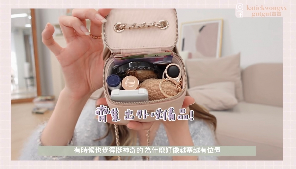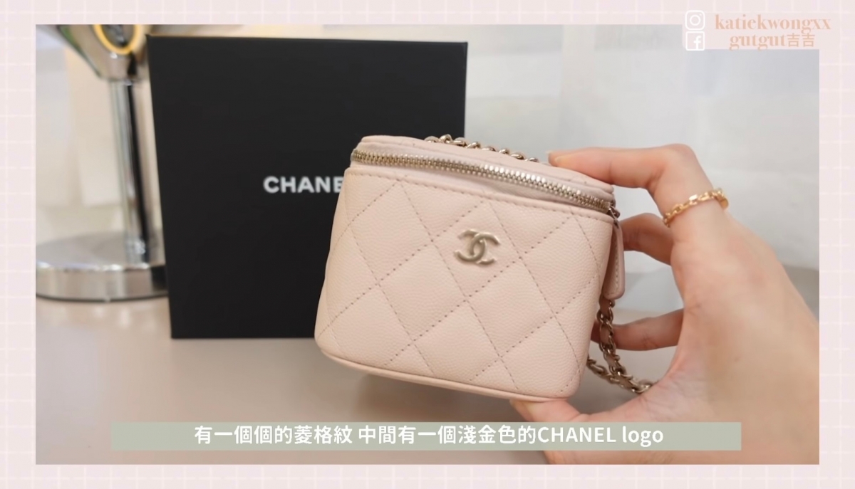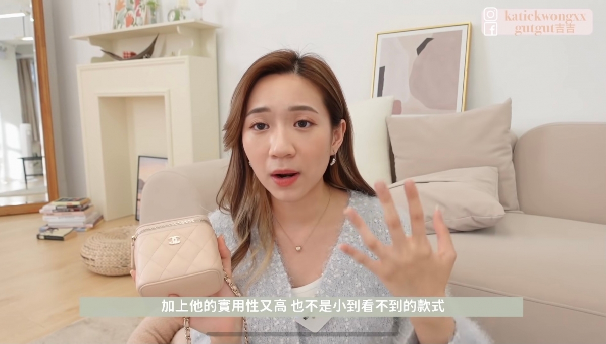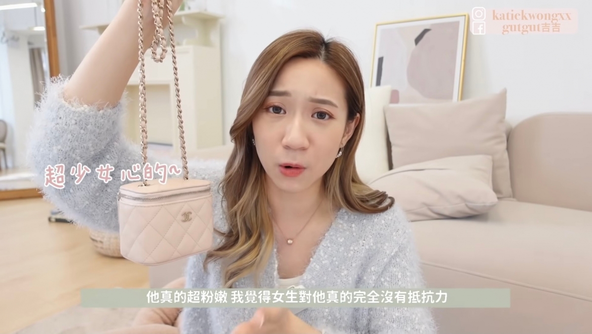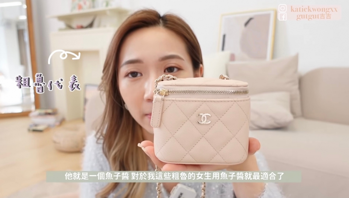 Gutgut吉吉近日上傳了一段開箱影片,指有眼利的觀眾發現她的新手袋,於是決心拍開箱影片。她在影片中提到Vanity Case這款手袋很難買,而淺粉紅色更是小見的款式,是因為朋友有相熟的SA才成功買到,當時她以價格HKD16,900購入,推薦給第一次想入手但預算不足的女生。
