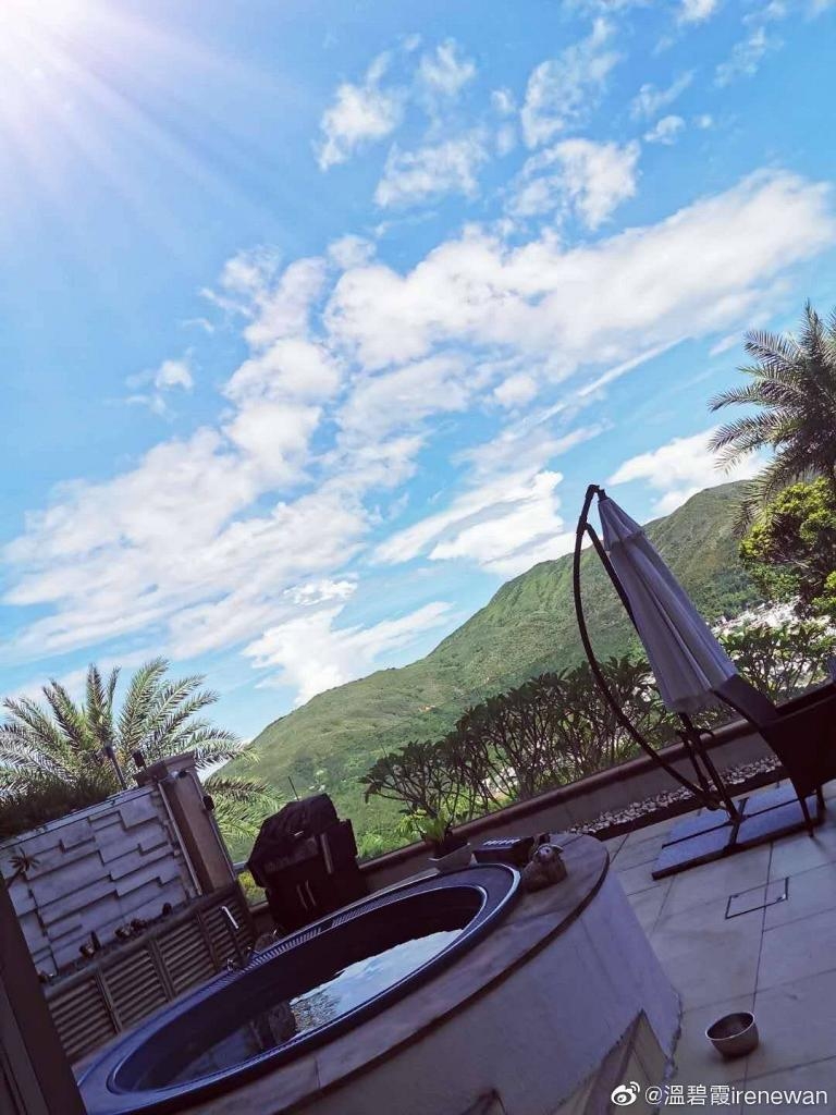 溫碧霞的豪宅最吸睛一定是天台花園,過往她曾在微博上傳與狗狗在花園曬太陽的照片。可見花園種植了不少綠色植物,地下又是一大片草地,可以讓狗狗盡情玩耍。Irene又在天台花園放置了沙發、藤椅等,空閒的時候坐下來,充滿度假的感覺。