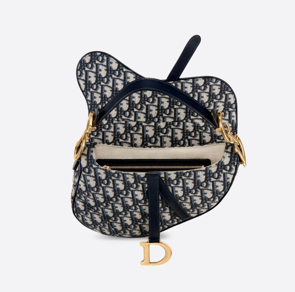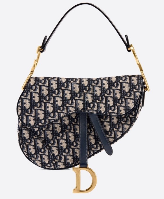 這個經典的 Saddle 馬鞍袋藍色 Dior Oblique 提花款一直很受歡迎,又可以手提或肩背,並可配搭不同肩帶,一袋多用。