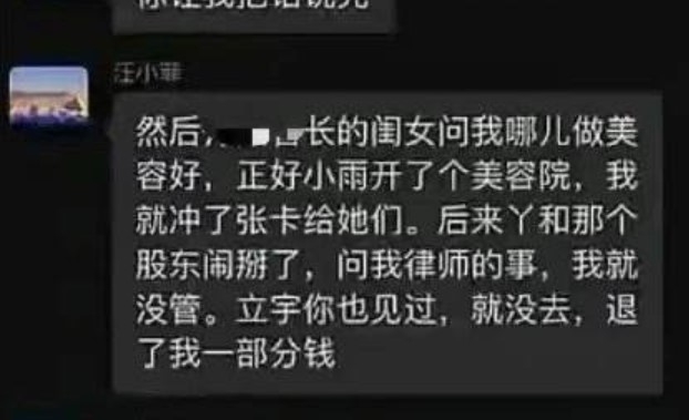 內地首富之子王思聰亦曾轉發過群組的對話截圖,據知該名「小四」 是海南某位高官的女兒,汪小菲則試圖在群組裡解釋和該高官的女兒並沒有在交往,只是一起打過高爾夫球和吃過飯。