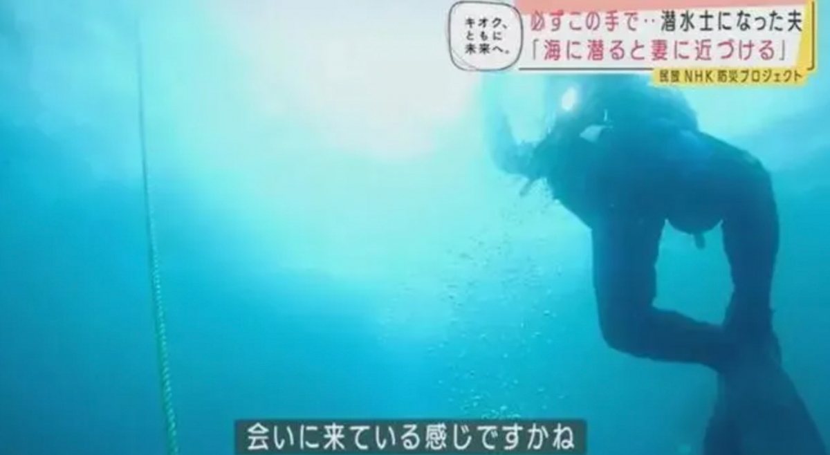 高松康雄曾經看到潛水員在大海搜索落難者遺體的場面,於是萌生了要用自己雙手找到太太,並在2014年成功正式考取國家潛水資格,對於年紀大的高松康雄絕對不是一件容易的事。