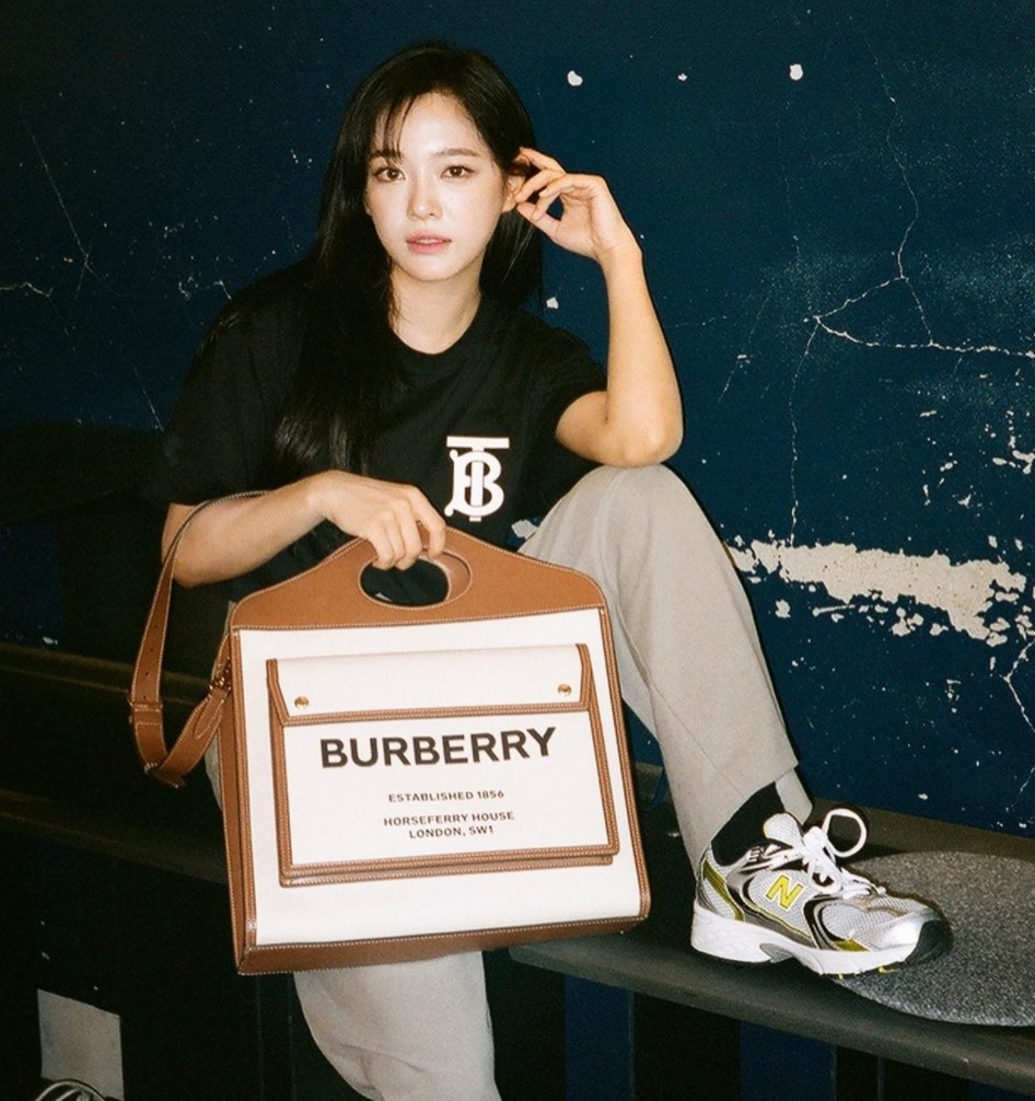 在金世正IG中會發現Burberry是她私下愛牌之一,她曾背上Burberry小型皮革 TB 包,再配上同品牌的針織外套,十足一個鄰家女孩。雖然手袋是低調的黑色,但品牌的金扣非常吸睛,成功點綴整個造型。