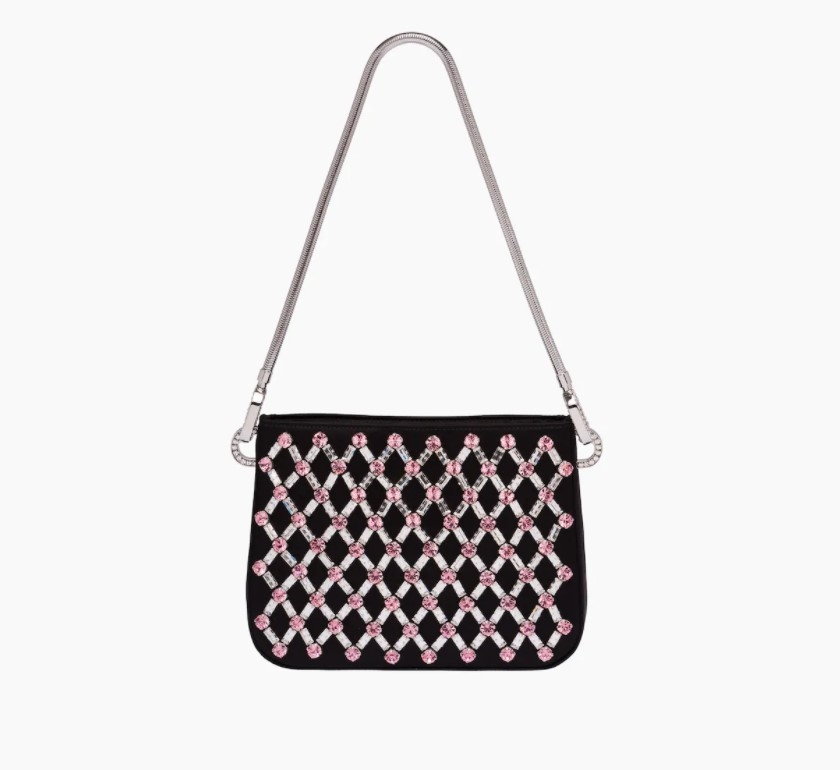 這款Sassy綴飾綢緞手袋以水晶塑造出幾何圖案,充滿特色又時尚,盡顯金世正的高貴氣質,在出席隆重場合非常適合!