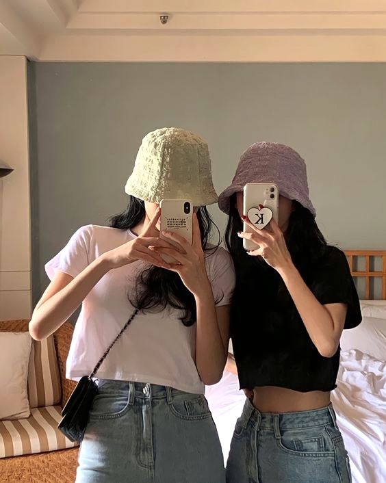 頭貼頭、搭膊頭或是摟著腰也是經典閨密照Pose,二人互相依靠,展示出閨密之間感情深厚的一面!