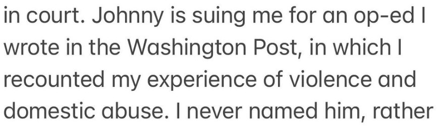 Amber Heard在4月10日於IG寫下長文,宣布自己即將暫別網絡,因為接下來數星期都要準備與前夫Johnny Depp再次對簿公堂,她更再次提起這宗漫長官司的開端,就是因為Johnny不滿她在2人離婚後,於2018年在《華盛頓郵報》發表及關於反對性暴力的文章,她指自己甚至沒有文中指名導姓,但Johnny卻因此而控告她誹謗,指她對自己的名聲作出損害,令她感到十分無奈。