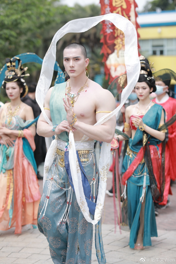 原來中國四川成都一個主題公園近日舉辦了名為「國風潮玩節.一夢敦煌」的特別活動,當中包括巡遊演出,邀請了不少專業Coser及模特兒到場,穿上炫麗的敦煌服裝扮成不同的角色在園內遊行,而片中這名Coser外號叫「肥牛文Wen」,現年只有22歲,但已經有豐富的Cosplay經驗及常獲邀參與不同的硬照拍攝,在內地Cosplay甚有名氣。