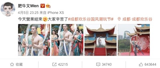 而這次出活動「爆紅」後,「肥牛文Wen」更是名氣大漲,有當日活動拍片的在場人士都表示難以將雙眼從「絕美唐僧」身上移開,讚「肥牛文Wen」的扮相十分有靈氣,而他將活動照放上個人微博後,至今已有超過64萬個Like,微博粉絲也由數千激增到近13萬。