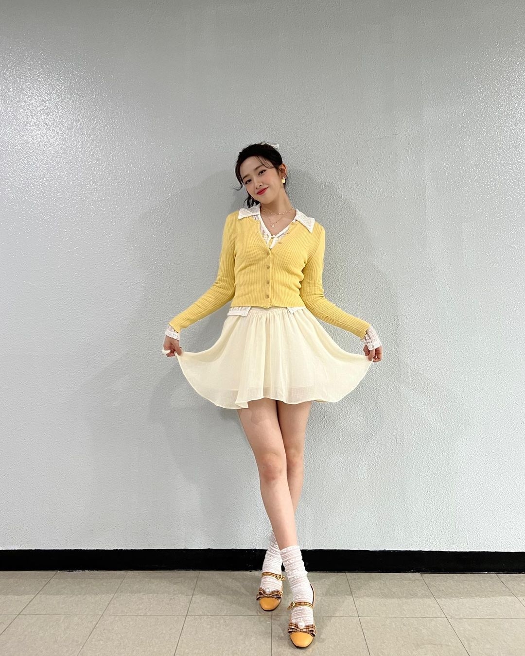 炎炎夏日又怎能缺少溫暖又充滿活力感的黃色!簡單搭配一條牛仔短裙已經很好看~加上LISA的黑短髮,青春感十足!