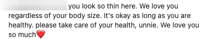 對於徐玄振突然暴瘦網民及粉絲都顯得相當擔心,紛紛在她公司IG下留言希望他們關注偶像的健康。