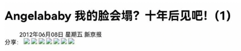 近日有網民找出Angelababy曾在2012年接受內地傳媒訪問,親自回應過整型疑雲,表示自己看到有網民說她的臉在10年後會塌下來,她笑言:「10年後塌不塌都是我的事,再說我又沒有挨那一刀,我怕你說什麼?那就10年後見吧!」