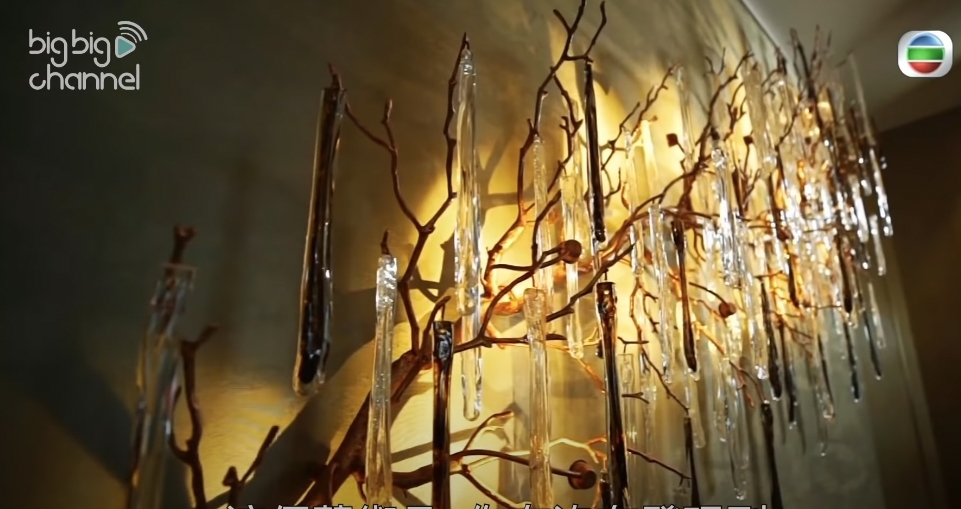 關之琳的客廳設計氣派輝煌,而且擺放了不少藝術裝飾,包括一組外形似「冰雪融化」的大燈飾,她表示自己相當喜愛這組燈飾,搬了兩次屋都不願換掉。