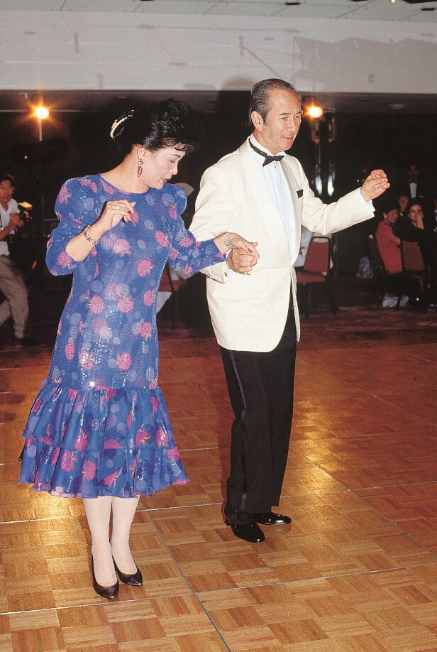 何鴻燊遇見年幼的藍瓊纓瞬間被她大方優雅的舉止、外貌所吸引,特別是有一次慈善晚會上,藍瓊纓曾上台朗誦詩詞,加上她舞技很好,就給了何鴻燊很深刻的印象,甚至開始邀藍瓊纓去海邊散步。藍瓊纓也被何鴻燊所吸引,兩人經常在晚會上跳舞,一度被稱為「舞王」、「舞后」,關係親密。