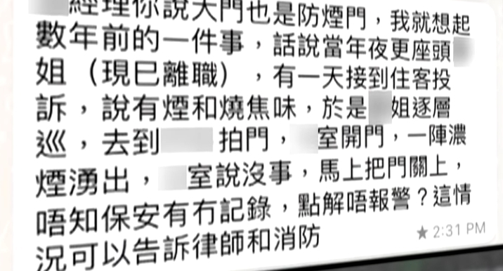 而且有不少住戶表示,單位曾出現黑煙,疑有火警發生,但該男人否認,卻也令住戶們擔心自身安全。因為一旦發生火警,家中堆積如山的各種雜物,恐怕會導致難以滅火,甚至是有「助燃」的作用。因此旁邊的鄰居家中甚至自備了滅火筒!