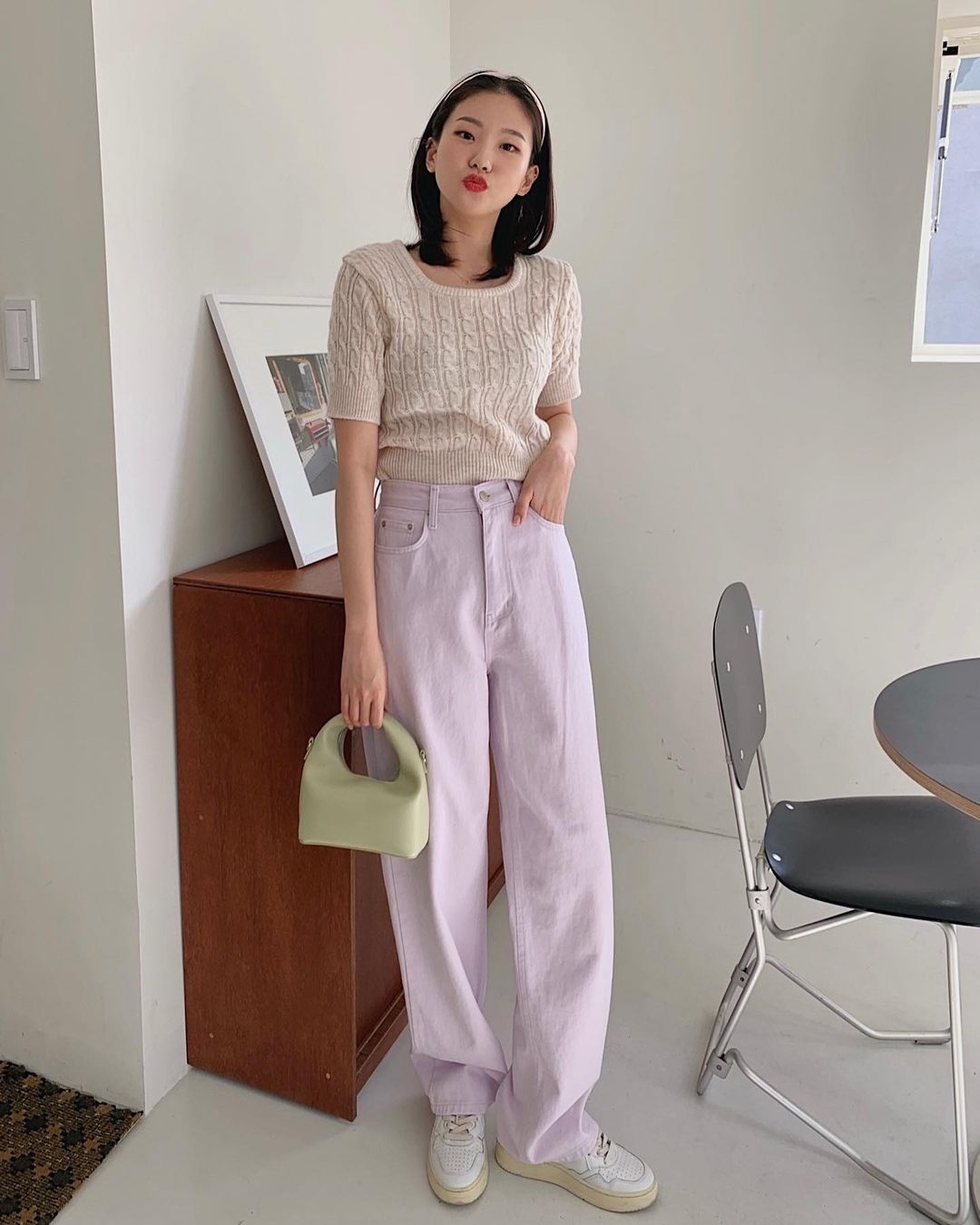 嘗試多選擇以深色的單品來讓下半身看起來變得收窄,視覺上會更顯瘦一點~相反,淺色系的單品看上去會有點放大、拉闊的效果。大家可以嘗試「上身淺、下身深」的穿搭來想修飾梨形身材~