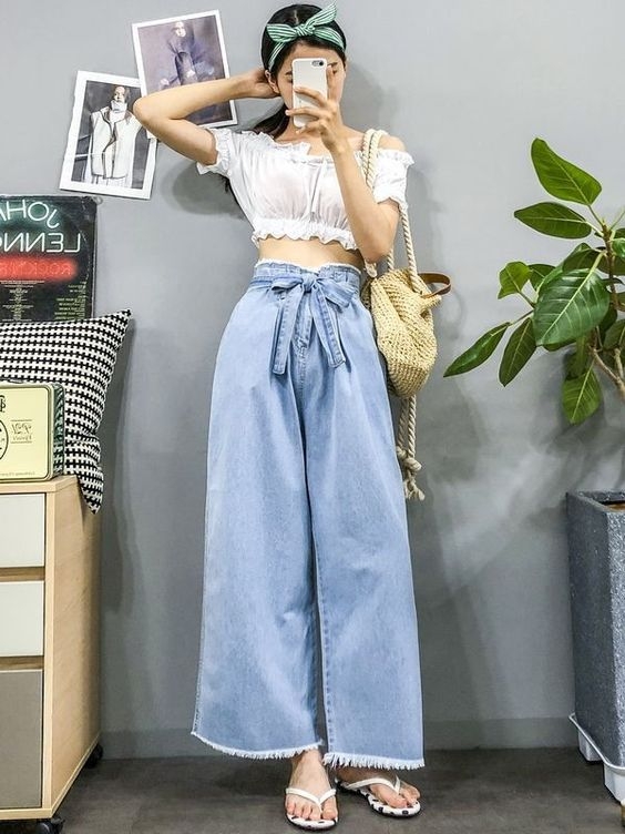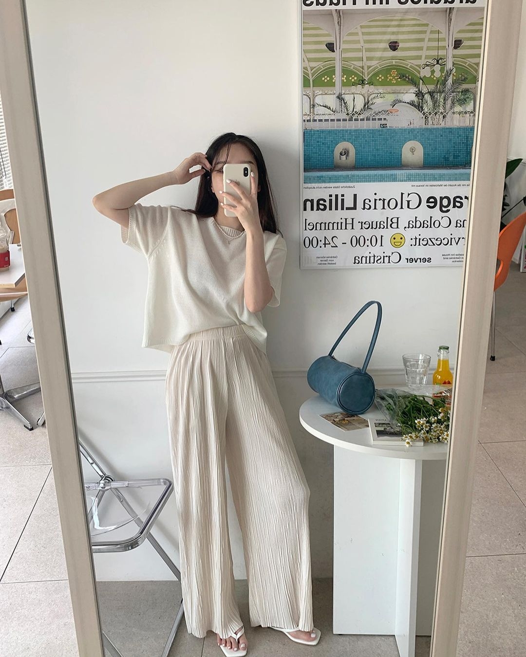 以「上窄下寬」的穿搭法則來轉移大家的視線,強調上半身的線條,同時隱藏下半身的贅肉和骨盤等較突出的部分,上身以短版、貼身的版型,搭配下身高腰又寬鬆的裙或褲裝,有助拉長身材比例~