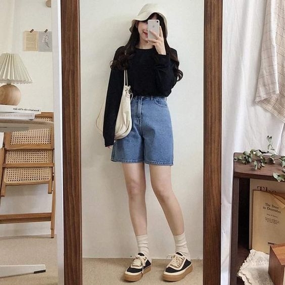 近年五分褲也是女生們的愛穿單品之一,別以為五分褲只能是瘦女生才能穿~對於有肉地的女生,只要避開緊身的馬鞍褲、單車褲便可以,試揀選較為挺身質地的五分寬褲,像是牛仔丹寧,剛好可以遮住假胯寬和大腿肉的位置,並露出最纖細的大腿部位,達到顯瘦的效果又不失時尚!