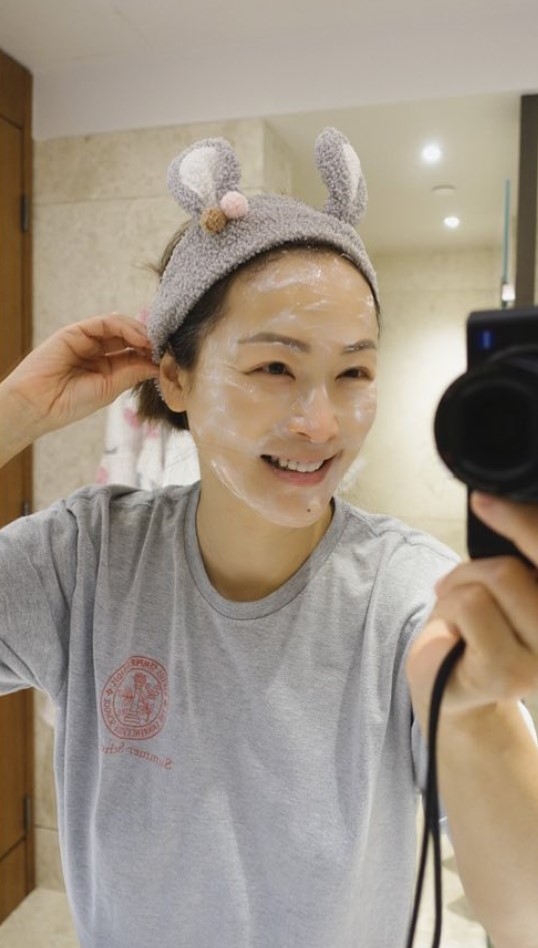 童愛玲經常會在IG推介自己的護膚品,看來她即使已經為人母亦堅持保養,她又曾經素顏敷面膜,可見她的皮膚非常白滑,她亦曾說過自己的逆齡秘訣全靠用面膜及行山。