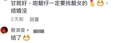 結果蔡淇俊看到留言後,解釋是因為喝醉了才會與密友牽手,面對網友對於他性向的質疑,他則說:「呸呸呸,怎麼可能?」公開否認自己是同性戀。這時候有網友問他結婚了沒有,一向沒有傳出任何結婚消息的蔡淇俊,突然自爆已婚:「結了」令外界相當驚喜,不過更震驚的還在後頭!
