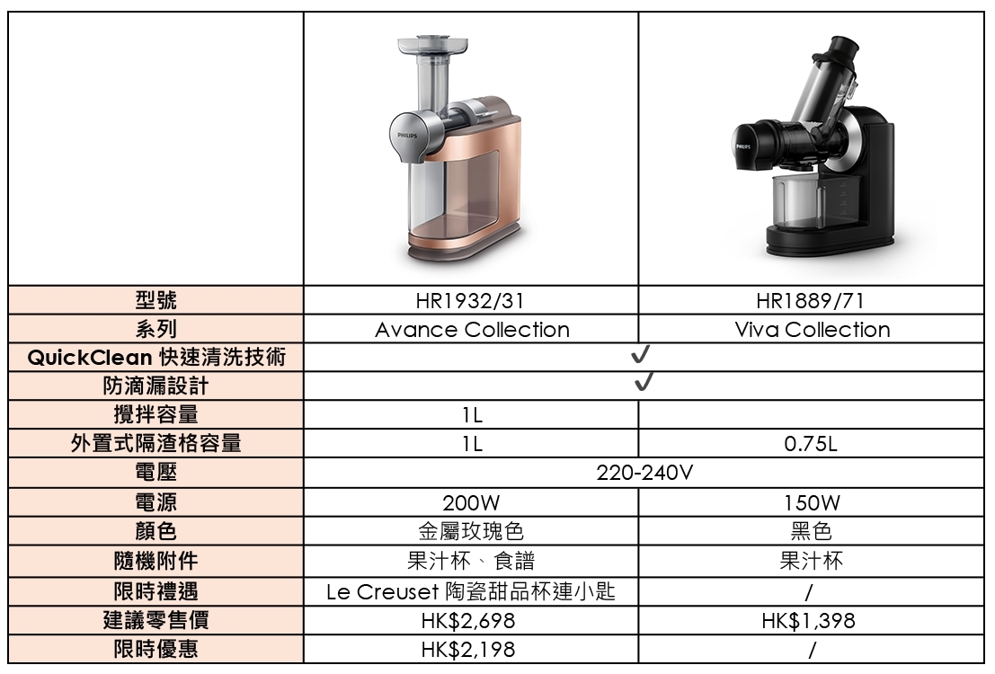 了解Philips Avance Collection慢磨榨汁機 HR1932:https://www.philips.com.hk/c-p/HR1932_31/avance-collection-masticating-juicer