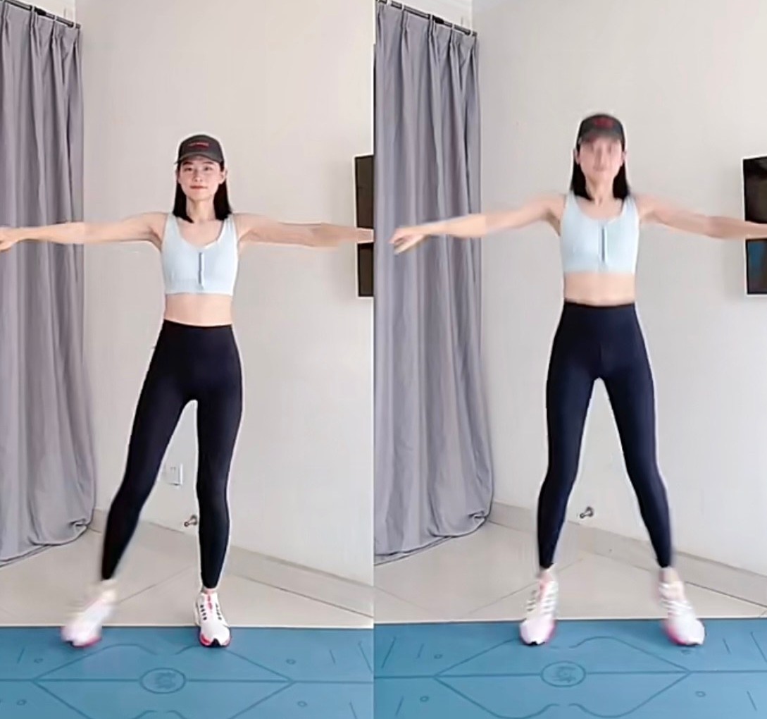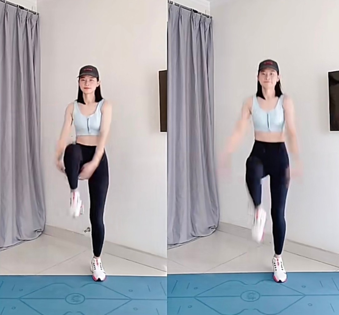 第一個動作比較簡單,只需提起手臂上下擺動,再配合雙腳開合動作,如果想效果更好可以嘗試開合跳,而且動作可以充份訓練到手臂及腿部的肌肉。