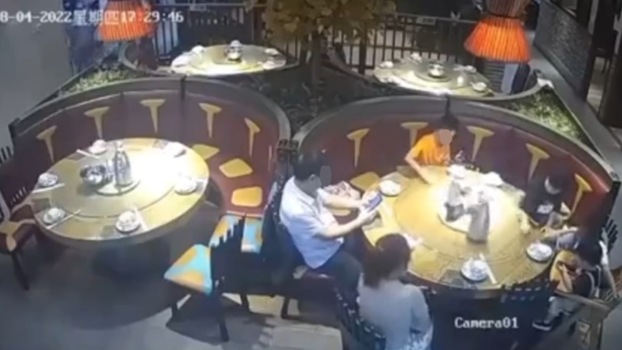 網上近日流傳一段影片,是一間中式餐廳的CCTV。影片中能看到兩名男童、一名女童以及一個嬰兒與父母坐在桌子旁邊,相信是在等待餐點。結果兩名男童疑似因為無聊,竟然狂轉餐桌正中間的轉盤,男童們非常用力地轉著,轉盤上的「洗碗水」、熱水壺、紙巾等都搖晃不穩。