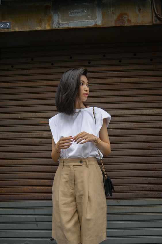 方領及露出腰部的短版背心還能修飾頸部線條和突出腰線,更添少女感!下身再以寬褲作搭配~另外想收起副乳也可以試試梯形背心,剛好可以利用側邊袖口位,完整地包住副乳~