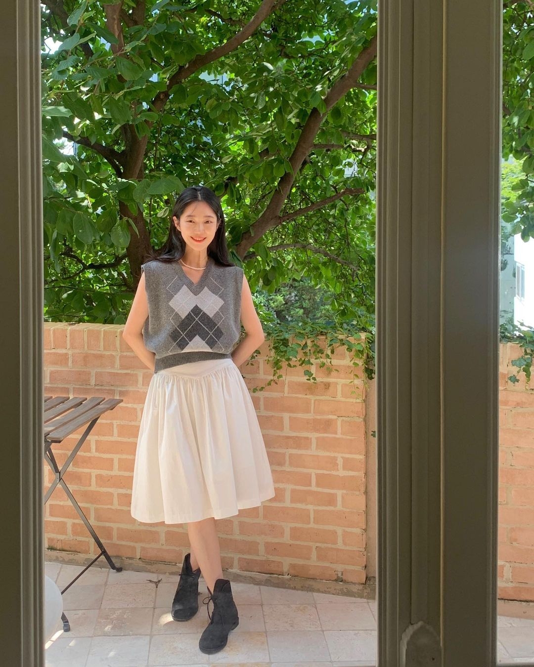 脖子較短的女生可以利用大領口的設計,把肩頸線條露出,不但能讓臉部線條延伸,更顯臉小,還能轉移視覺上的注意力~記得要避免一些高領設計的背心,不然會更顯臉大和頸部粗短的問題!