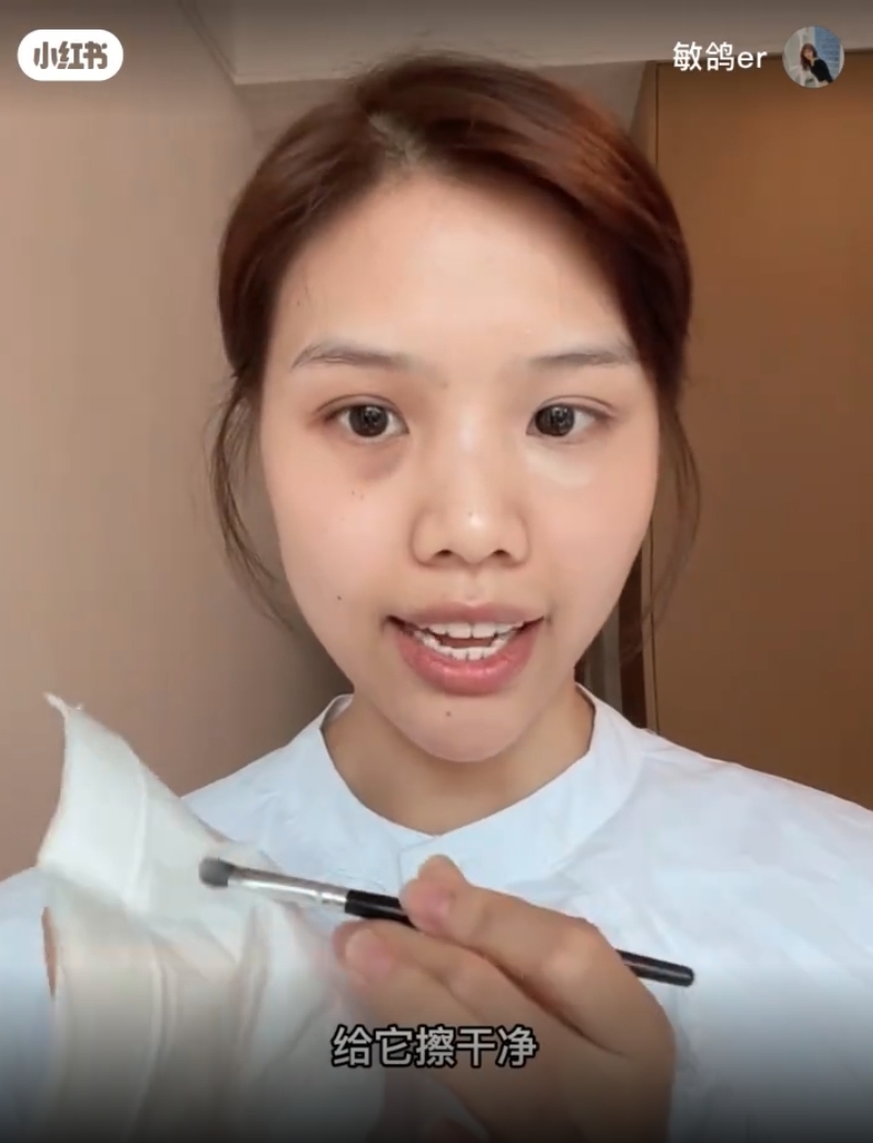 然後拿一張紙巾出來,把剛剛遮瑕刷上面的遮瑕擦乾淨。