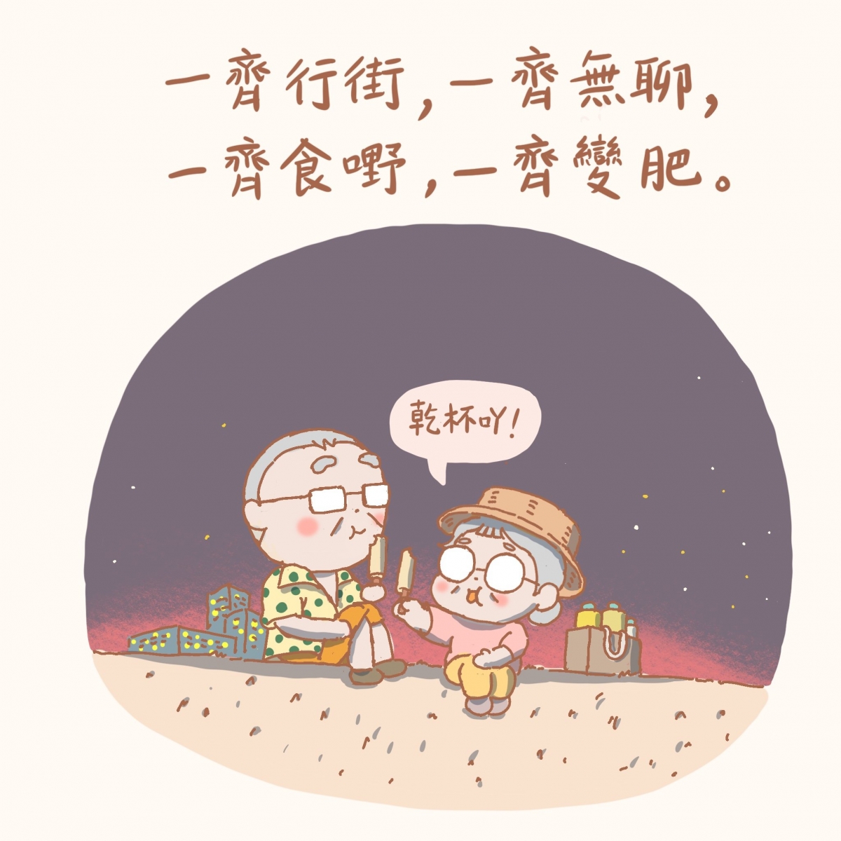 戀愛時哪個時刻最幸福?是收到鮮花的剎那驚喜,還是吃一口他親手做的愛心料理?香港插畫《Nothing Serious》作者Kelvin看到街上的公公婆婆牽手時便感到滿滿幸福感,因此創作出「公公婆婆」系列,以童趣畫風繪出老夫老妻的生活小溫馨,網民大呼「這才是真正的愛情!」
