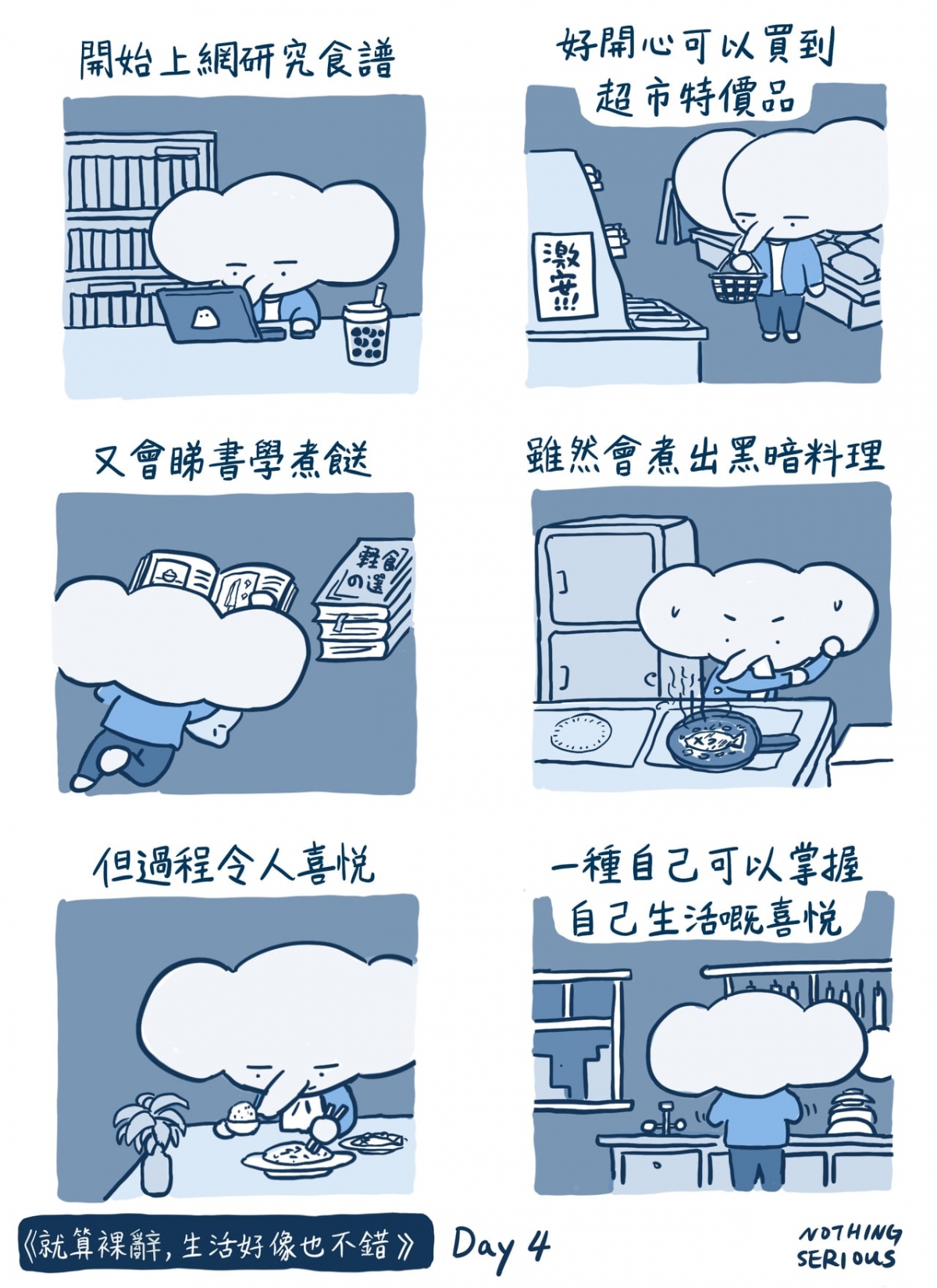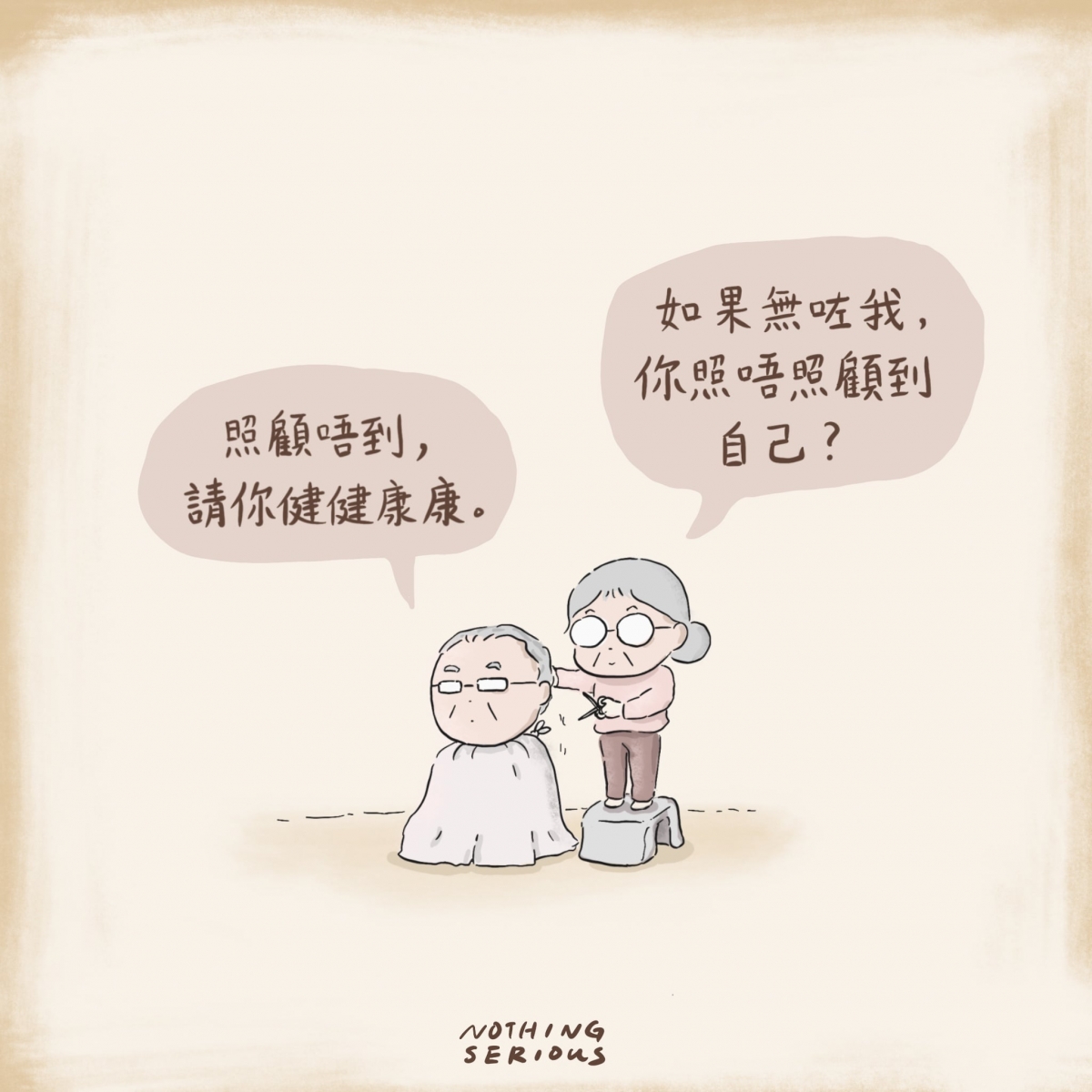 Kelvin投入全職創作超過6年,今年才開始暖心的公公婆婆系列,專頁《Nothing Serious》產出不同角色,時而對職場大吐苦水、時而厭倦世界紛擾, “sad but true”的題材引起共鳴,短短幾行文字和簡單的插畫便道盡很多人心聲,粉絲們又可藉此「圍爐」和互相鼓勵!