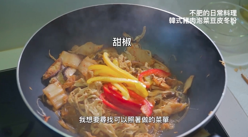 Ellie表示自己不會用節食方法去減肥,她堅持會吃原型食物,當中她就分享過1款簡單又美味的韓式豬肉泡菜豆皮粉絲食譜,令人完全不覺得在吃減肥餐,飽肚就不會覺得負擔。