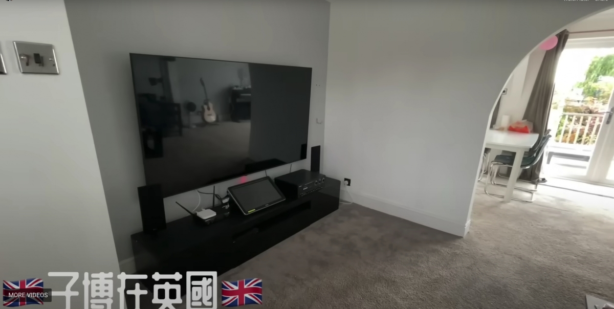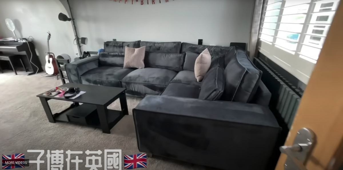 獨立屋的空間寛綽得除了有花園,還設有5間房和寛闊的客廳,從片中可見擺有大型的L型沙發、巨大的掛牆電視,還有空間擺放鋼琴和結他,比上一間公寓寛敞更多。