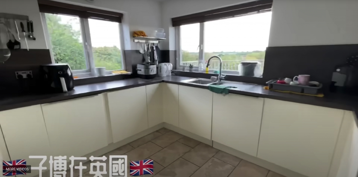 甚至,這棟獨立屋的廚房也十分開闊,可以放下雪櫃、洗碗機、焗爐和三面枱,窗外還可以看到綠油油的花園和遠處的草地,非常療癒。