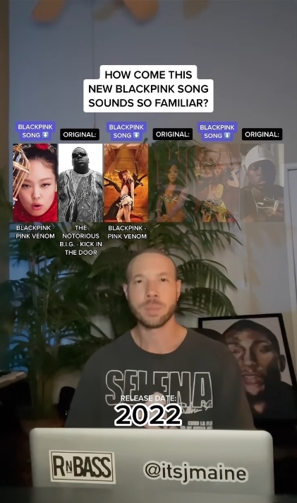 一名外國YouTuber,以及音樂人Jarred Jermaine,近日就在IG上傳了一段片,標題為:「How come this new Blackpink song sound so familiar?」(為何Blackpink的新曲好像似曾相識?)片中他把《Pink Venom》、The Notorious B.I.G.的《Kick in the Door》、Rihanna的出道作《Pon De Replay》,還有50 Cent的《P.I.M.P》進行對比。