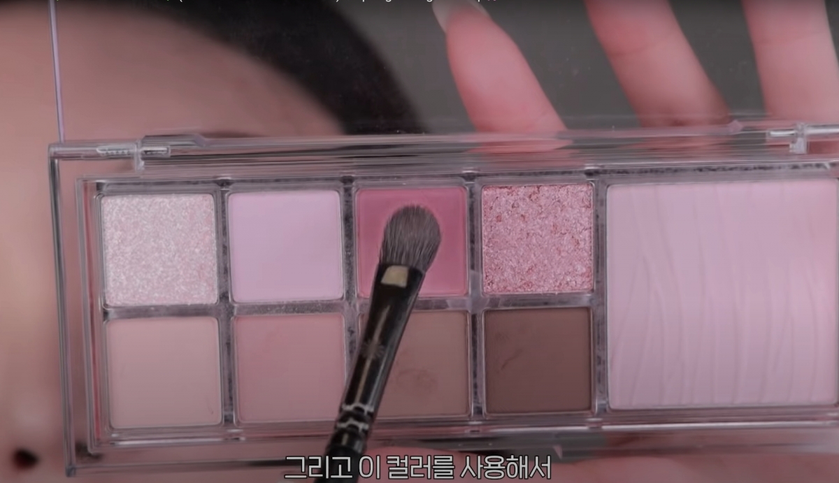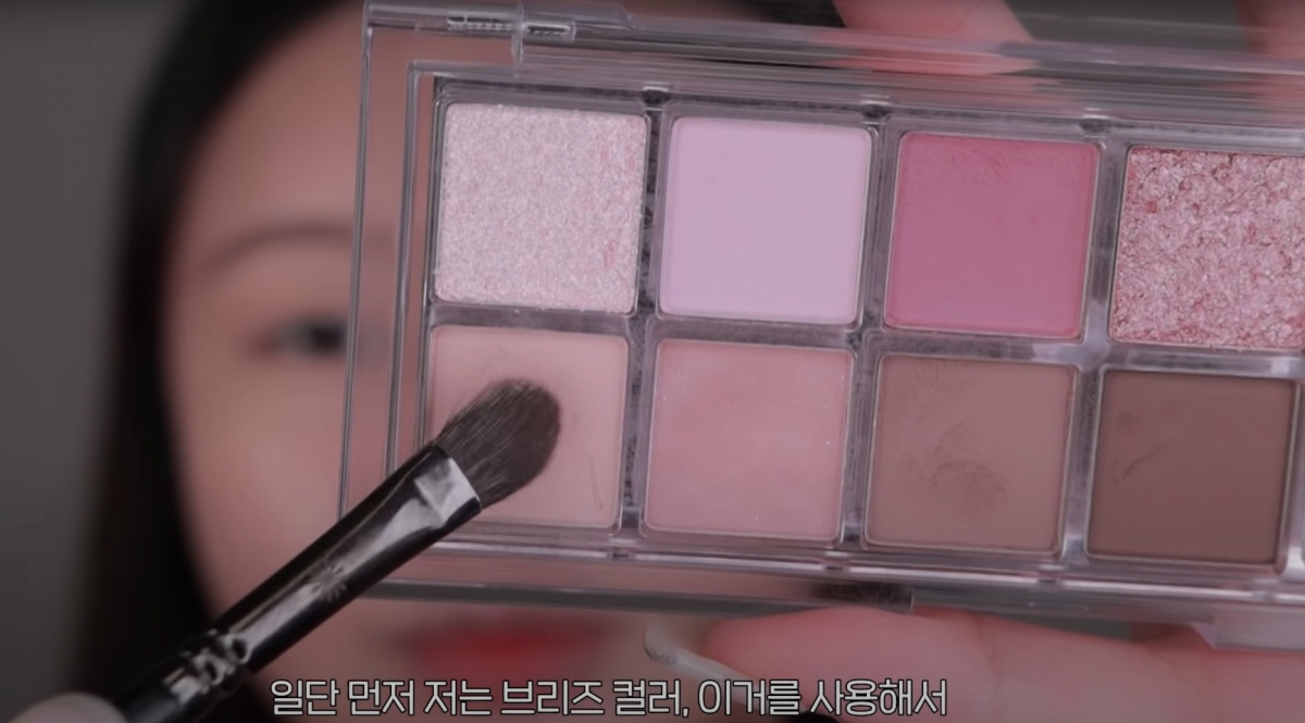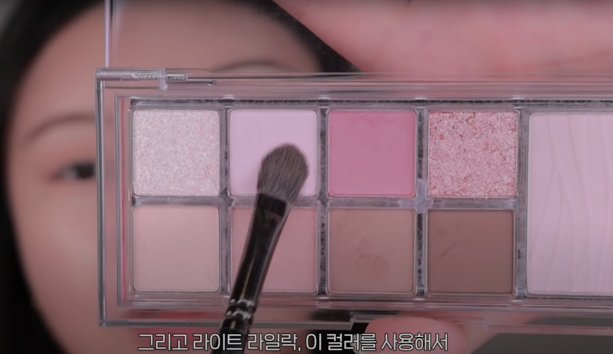 然後眼影使用超少女的粉嫩色系,讓浪漫唯美感升級!先簡單在整個眼皮刷上淡淡的粉色調打底,再在上眼瞼的眼皮褶皺刷上亮粉色的眼影。