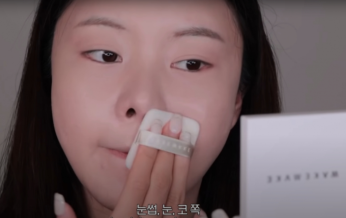 之後再用粉餅幫助修飾皮膚,以海綿粉撲取出適量的內容物後,沿著肌膚紋理輕輕塗抹。如有必要,可以不時輕拍以重新塗抹。