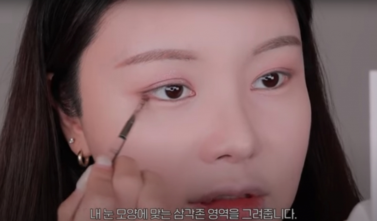 先使用臥蠶筆在眼下畫出臥蠶線,讓雙眼自然放大。再用眉粉填補眉毛空缺。